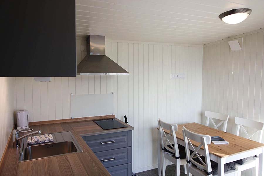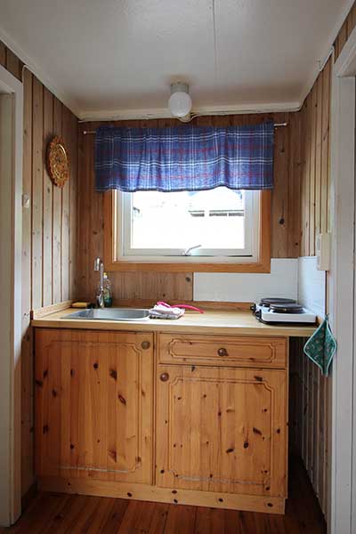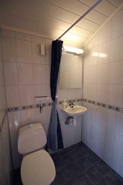 Disse hyttene har ikke eget bad, men like i nærheten finner man et lite sanitæranlegg med toalett og dusj. Koster ikke ekstra.