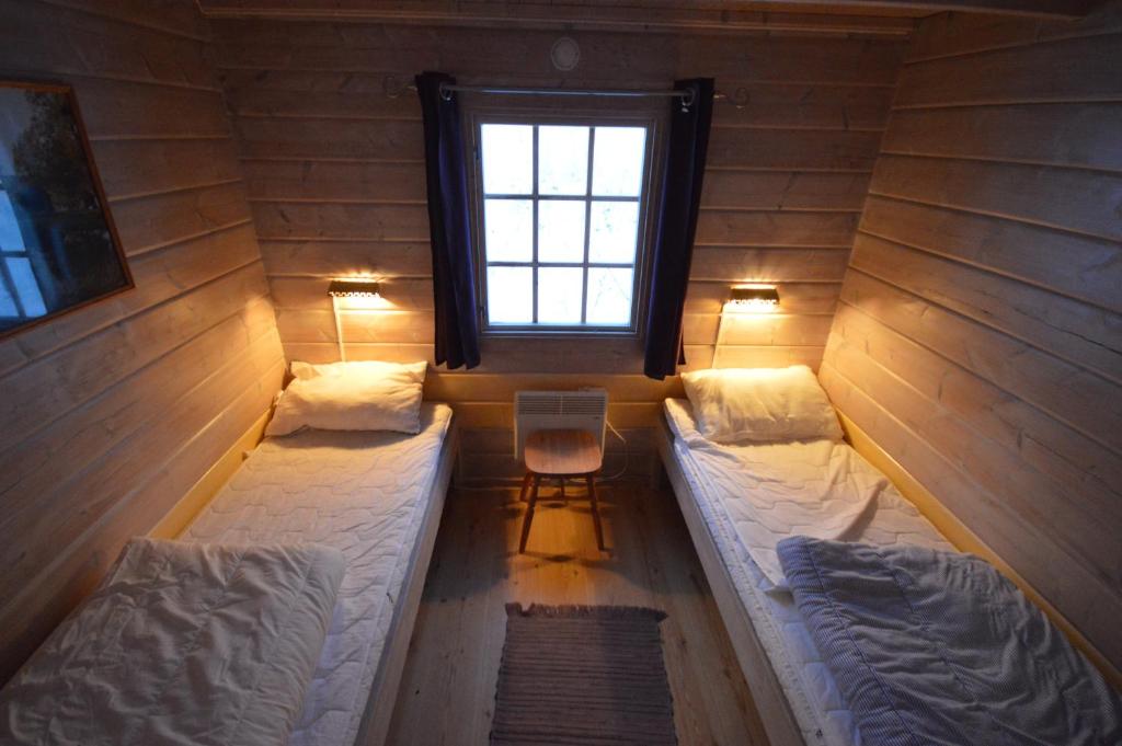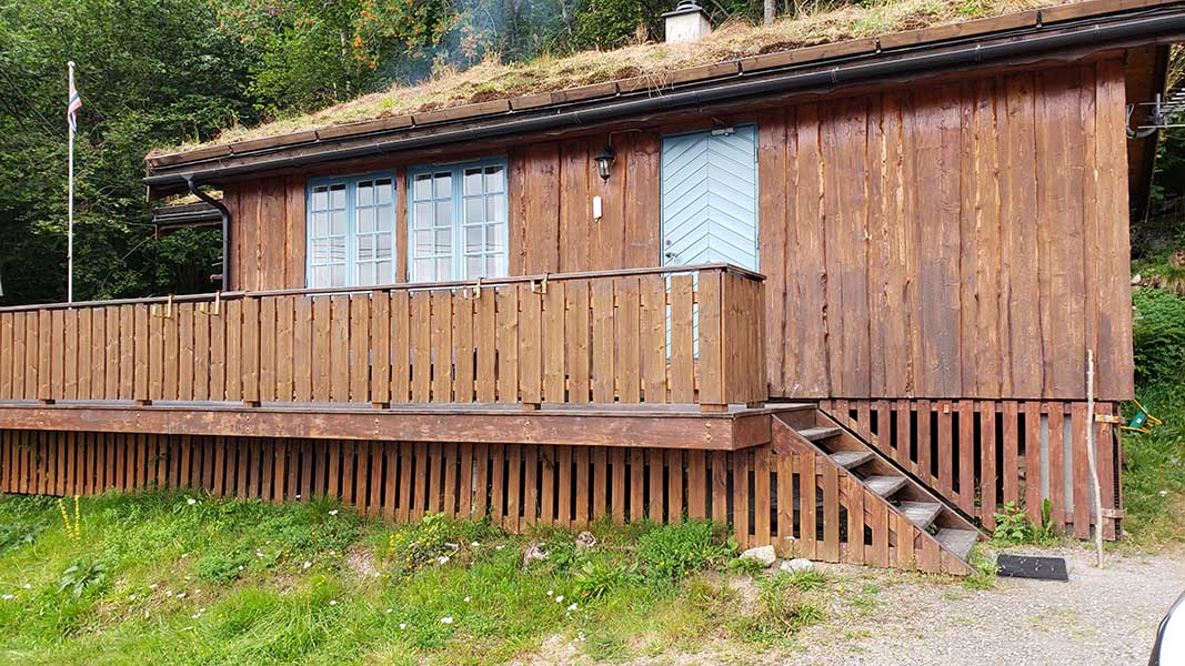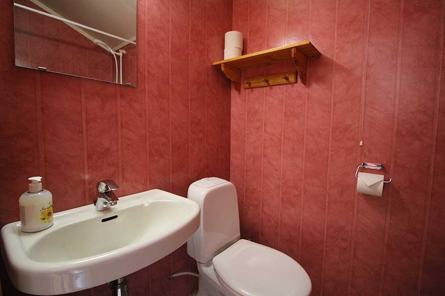 Denne hytten har ikke eget bad, men like i nærheten finner man et lite sanitæranlegg med toalett og dusj. Koster ikke ekstra.