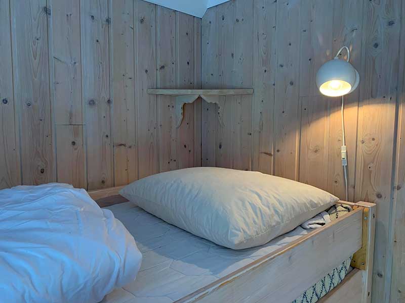 Hytte nr. 19 er av samme type som 17 og 18, men denne har plass til kun tre personer. Denne hytten har nemlig en familiekøye istedenfor to vanlige køyesenger. Hytten er også utstyrt med kokeplater, kjøleskap og spisebord, egnet for enkel matlaging. Man kan også benytte seg av et noe større utekjøkken rett i nærheten. Hytten har også egen balkong med utemøbler. Parkering i nærhet av hytte.