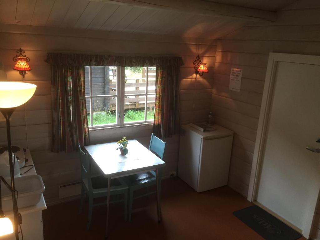 Denne hytten har et soverom med to køyesenger, en liten kjøkkenkrok egnet for enkel matlaging (man kan benytte seg av et noe større utekjøkken like i nærheten), spisebord og egen balkong med utemøbler. Parkering i nærheten av hytte.